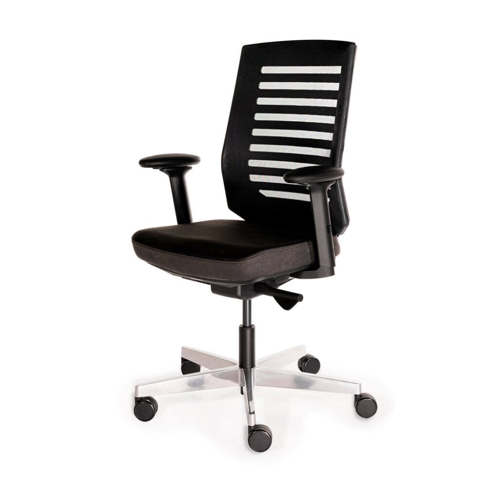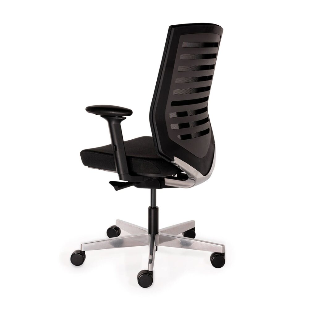 De stoel heeft een verstelbare zitdiepte, in hoogte verstelbare armleuningen en een rugleuning die verkrijgbaar is in netstof of stof.